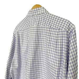 Keywords: dress shirt, purple gingham, men's fashion, classic fit, button-down, long sleeve, casual wear, elegant, breathable, comfortable, cotton shirt, office wear, machine washable, pre-owned, men's clothing.