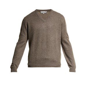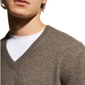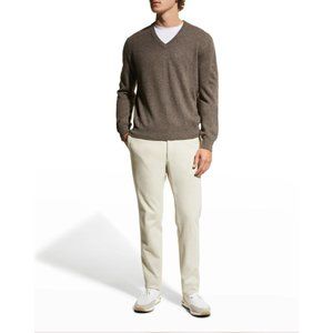Neiman Marcus Men's Wool-Cashmere Knit V-Neck Sweater in Brown - Size Medium