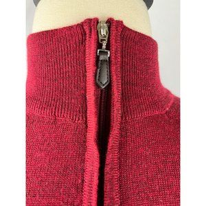 The Neiman Marcus Men’s Size Large Quarter Zip Sweater is a luxurious choice for warmth and style. Crafted from a blend of 50% Merino wool and 50% Acrylic, this red, solid patterned sweater features a 1/4 zip, collar, long sleeves, and ribbed hem and cuffs.