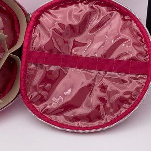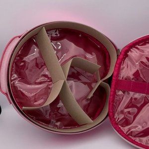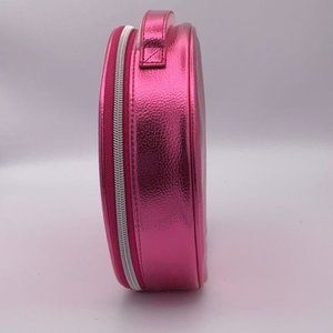 Neiman Marcus Metallic Pink Round Beauty Cosmetic Bag bPurse NEW