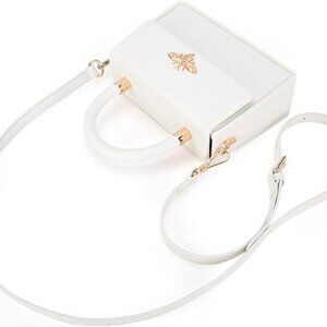 Neiman Marcus Milan Chiva Golden Bee White Leather Top Handle Bag
