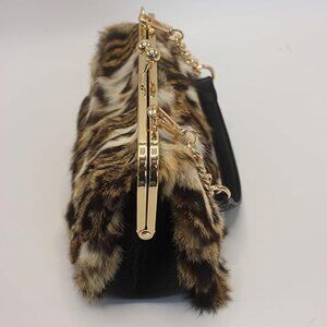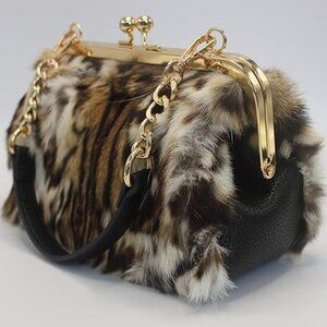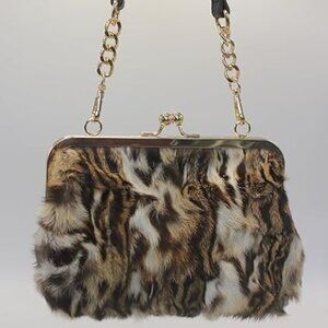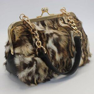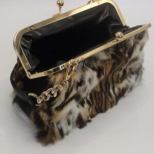 Neiman Marcus Mink Fur Brown Tiger Print Clutch Bag
