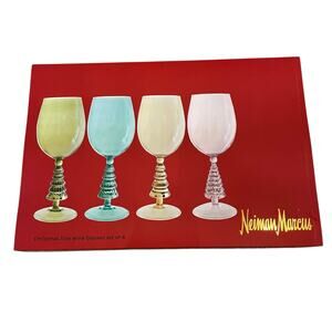 Neiman Marcus Multicolor Christmas Tree Wine Glass Set of 4 in Holiday Gift Box