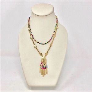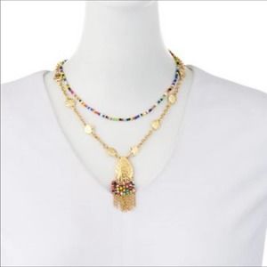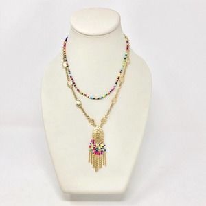 Fragments for Neiman Marcus Boho Multi Colored Beads 2 Tiered Dainty layered mixed-media pendant rainbow beaded necklace.