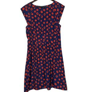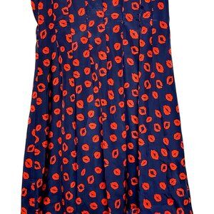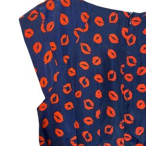 Neiman Marcus Navy Red Lips Kiss Print Cap Sleeve A-Line Mini Dress Size 14