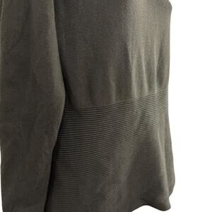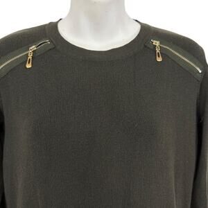 Neiman Marcus Olive Green Ribbed Zipper Shoulder Tight Knit Sweater Pullover S