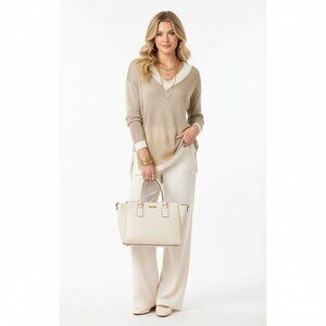 Neiman Marcus Outlander Tan & Ivory Knit Vintage Long Sleeve Tunic Sweater M