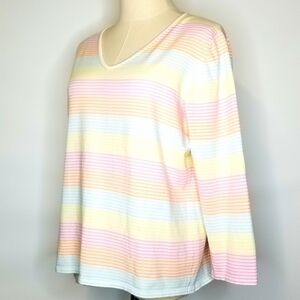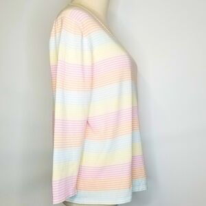 Neiman Marcus Pastel Stripe Longsleeve V-neck Cotton Blend Pullover Top, XL