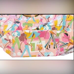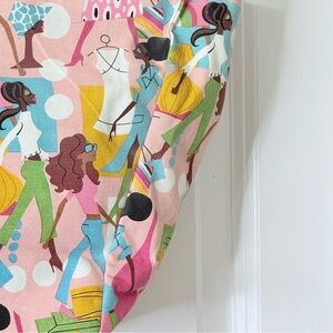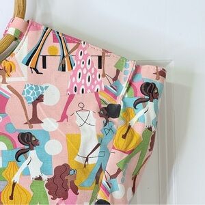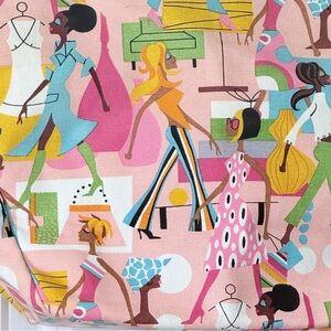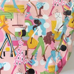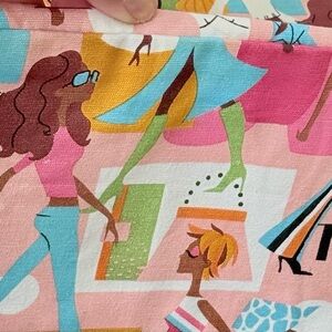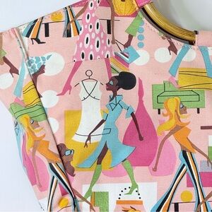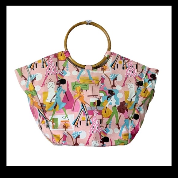 Neiman Marcus Pink Retro Tote Bag Purse Fashion Diva Print Wood Handles