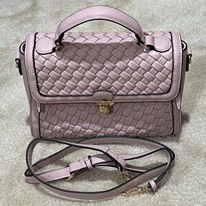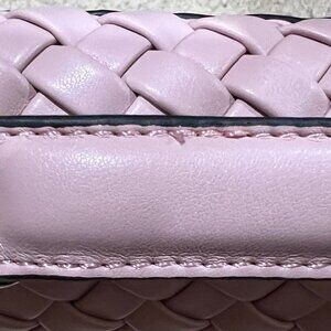 Neiman Marcus Pink Tweed Vegan Leather Hand Woven Handbag