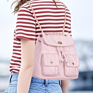 Crafted from soft vegan leather with a luxurious quilted texture, this backpack not only feels soft to the touch but also elevates any outfit. A versatile piece that strikes the balance between practicality and modern style.