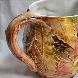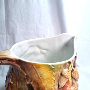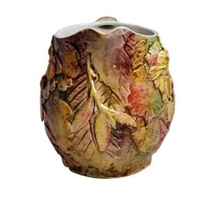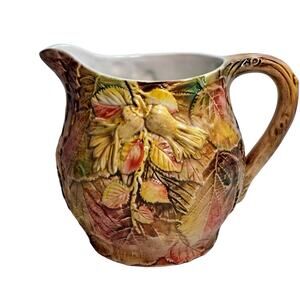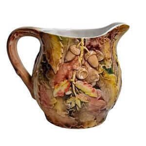 Neiman Marcus Ceramic Pitcher Autumn Woodland Relief Made in Italy Brown Gold Red 7".