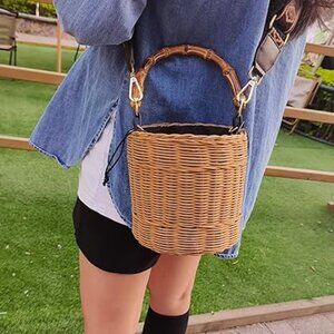 This shoulder bag is made of natural wicker weave, vintage bamboo top handle and unique bucket design, which makes the whole bag full of three-dimensional feeling and makes you more charming in the crowd. Drawstring open cover seal design, more convenient when shopping or traveling.
