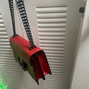 Experience true luxury with the opulent red Neiman Marcus Croc-Embossed Horsebit Luxury Crossbody bag in red croc-embossed leather.