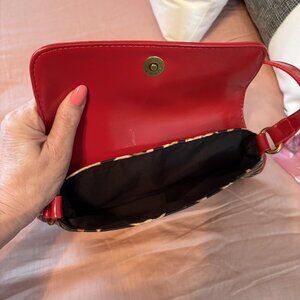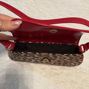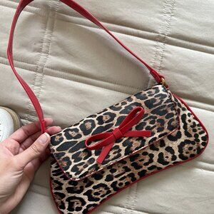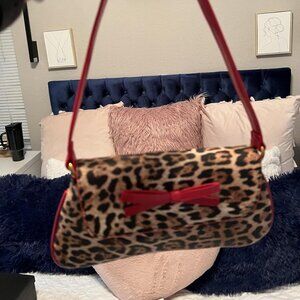 Neiman Marcus Red Leopard Print Bow Shoulder Bag