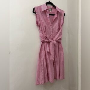 Neiman Marcus Red and White Striped Dress - small a 100% cotton - button up
