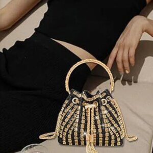 Our luxury glitter evening clutch is chic and unique with metal loop handles, detachable shoulder strap and full of dazzling rhinestones, All-round sparkling appearance, very fashionable, make you stand out from the crowd. Tassel & Drawstring Design-protect your bag with a tassel hook & drawstring and tensioning the chain securely. This Evening Clutch Bags will make you a dazzling one on every occasion.