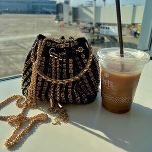 Neiman Marcus Rhinestone Black Sparkly Gemstone Bag