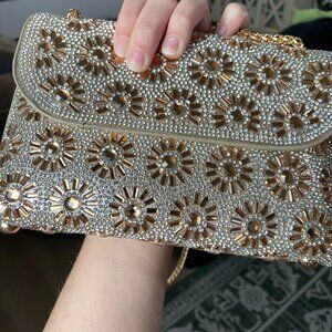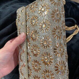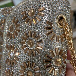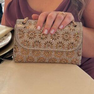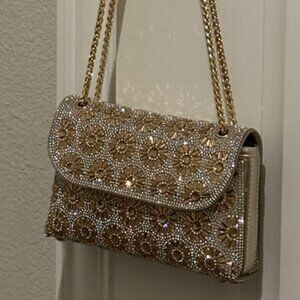 Neiman Marcus Rhinestone Plum Blossom Champagne Gold Evening Shoulder Bag