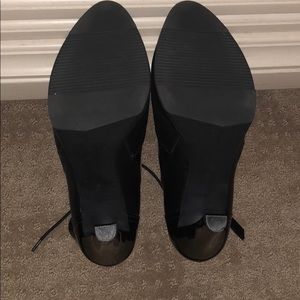 NWOT - These platform, stiletto booties are so comfortable and super stylish! The touch of patent leather adds the perfect amount off edge! Beautiful almond shaped toe box. 4-inch stiletto with platform bottom. Zippers on outside of each bootie are fully functioning for easy on, easy off. Lace up front ensures tight, secure fit. Treads on bottom provide non-slip surface. Gifted these fabulous booties but too large so never worn outside the house. Reasonable offers considered!!!