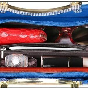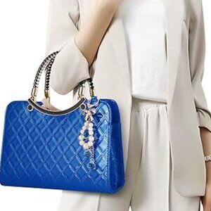 Neiman Marcus Shiny Faux Leather Blue Diamond Pattern Top Handle Purse