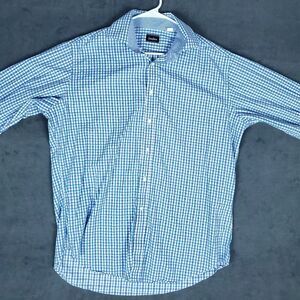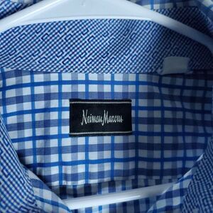 Neiman Marcus Shirt Men's Size Large Blue Check Plaid Button Down Long Sleeve Cotton