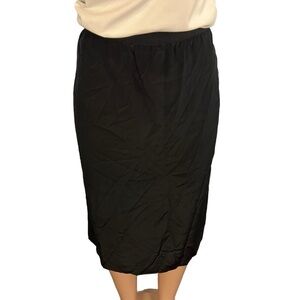 Neiman Marcus Silk Midi Skirt Black in size 14. Side zipper closure with side slit.