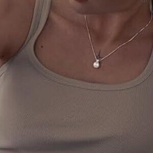 Simple, elegant, classic everyday essential piece! A simple pearl and diamond necklace consisting of a 10mm shell pearl suspended on a dainty silver box chain. The pearl necklace for women's length is adjustable (The longest length is 18.5’’) for more versatile wear, it can be used as a choker or collarbone length.