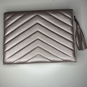 Neiman Marcus Silver Quilted Envelop Clutch GUC, 2 spots on inside see pictures