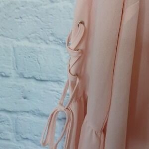 Neiman Marcus Boho Bell Sleeve Blouse Top Small Blush Pink Crepe Lace-Up Sleeve