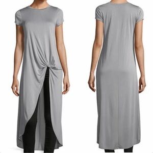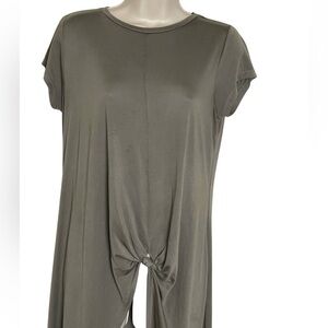 Neiman Marcus Soft Jersey Tunic Top Size M High Low Hem Front seam Knot Detail.