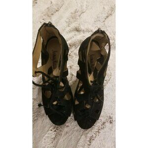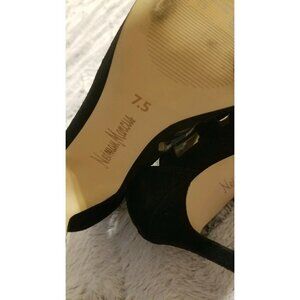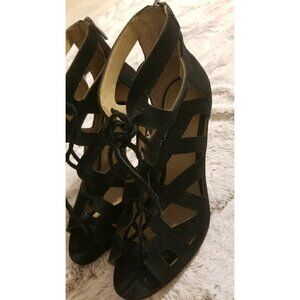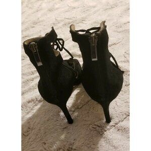 Neiman Marcus Strappy Black High Heel Open Toe Zipper Back Shoes Size 7.5