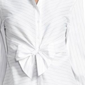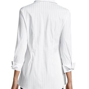 Neiman Marcus Striped Tie-Front Blouse, White/Black