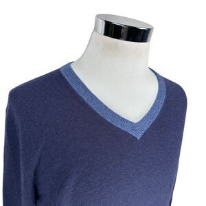Neiman Marcus Sweater Men’s Large Blue Grey Cashmere Long Sleeve V-Neck Pullover