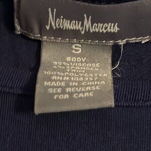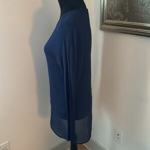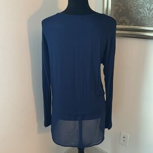 Neiman Marcus Sz S navy blue mix media pull over long sleeves jersey knit top