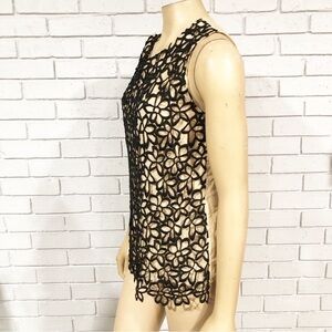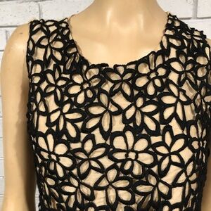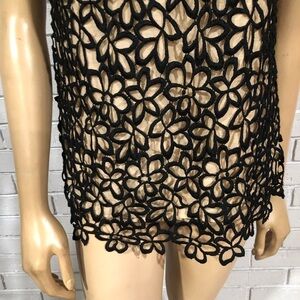 Neiman Marcus & Target Lela Rose Black Floral Top in Size Medium. Black and tan blouse with a floral lace overlay and keyhole back. Gently used.