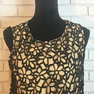 Neiman Marcus & Target Lela Rose Black Floral Top in Size Medium. Black and tan blouse with a floral lace overlay and keyhole back. Gently used.