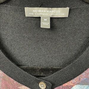 Neiman Marcus The Cashmere Collection Silk Cashmere Abstract Cardigan Black M
