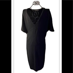 Neiman Marcus The Cashmere Collection Sz L Cap Sleeve 100% Cashmere V Neck Dress