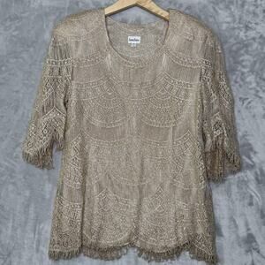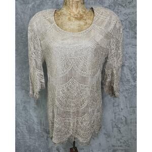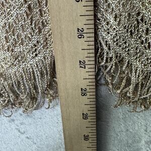 Neiman Marcus Top Womens Small Gold Metallic Fringe Crochet Knit Scallop Hem Vtg