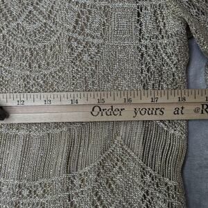Neiman Marcus Sweater Womens Small Gold Metallic Fringe Crochet Knit Scallop Hem Top Vintage 80s/90s