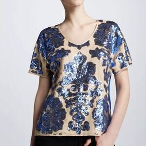 Neiman Marcus Tracy Reese Short Sleeve Sequin Blouse Women Size S Multicolor