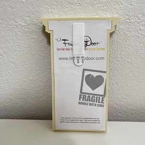Neiman Marcus Ultimate Little Fairy Door Kit Set for Girls Room Fairy Mailbox. This is the cutest little Fairy Door kit for girls ever! It has been used, my daughter had it on her bedroom wall for quite a while, but it was taken very good care of. One of the jars of glitter is missing the cork stopper and the sticker that we used to secure the door to the wall is still on the back of the door and you will need to purchase something to secure it to your wall. Such a fun little set.