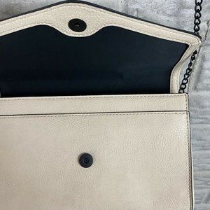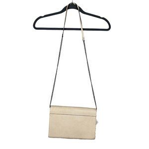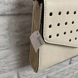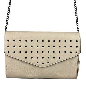 Neiman Marcus Vegan Leather Studded Crossbody Bag Beige Chain Envelope NEW Purse