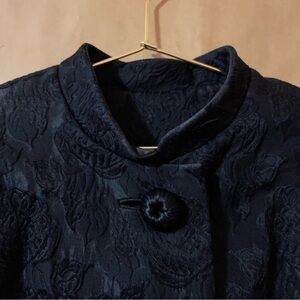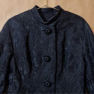 Neiman Marcus Vintage Brocade Floral Jacquard Coat Peacoat Evening Black Size M