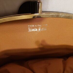 Neiman Marcus Vintage Leather Quilted Tan Small Clutch Cosmetic Bag.