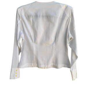 This Neiman Marcus blouse is so French, it practically whispers "bonjour" as you wear it. The elegant white cotton and classic design make it a versatile wardrobe staple. With its timeless style, it's perfect for adding a touch of sophistication to your day.