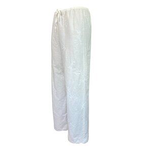 Neiman Marcus White Cotton Embroidered Pull-On Drawstring Wide Leg Pant S #99T