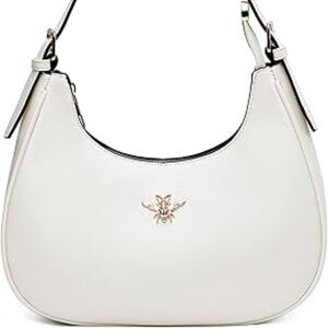 Neiman Marcus White Faux Leather Golden Bee Purse