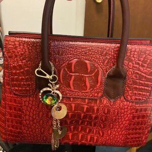 Neiman Marcus Purple Red Croc Embossed PU Leather Reverie Bag